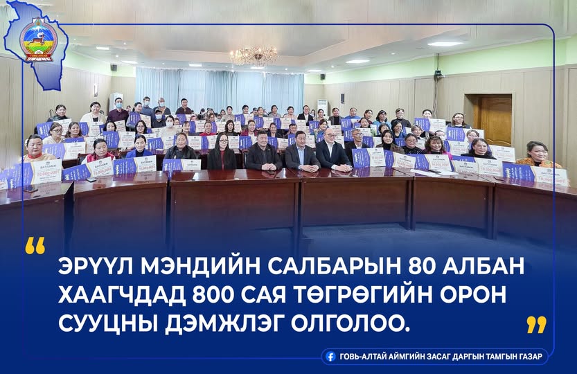 ✅ГОВЬ-АЛТАЙ АЙМГИЙН ЭРҮҮЛ МЭНДИЙН САЛБАРЫН 80 АЛБАН ХААГЧ ОРОН СУУЦНЫ 800 САЯ ТӨГРӨГИЙН ДЭМЖЛЭГТ ХАМРАГДЛАА