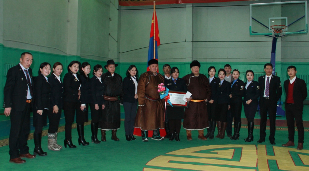 Шагналыг аймгийн иргэдийн Төлөөлөгчдийн хурлын дарга Л.Батжаргал, аймгийн Засаг дарга С.Гансэлэм, аймгийн Засаг даргын орлогч Ж.Ганбат нар гардуулж хүндэтгэл үзүүллээ.